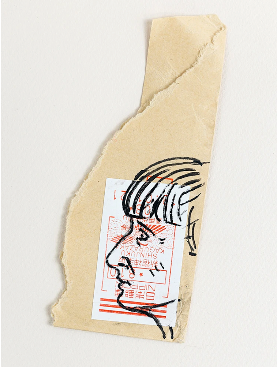 I stop, when I start studying the structure of paper. I discovered it while making collages. I get inundated with paper from all sides - I look at it, I rearrange it, I crumple it, I tear it. I disappear for a while. A stamp from Japan - I miss Masa's home, Sapporo.